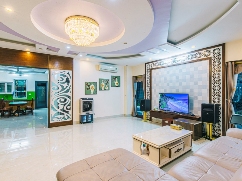 ✓ 1 phòng khách rộng : Tivi in, truyền hình internet TV, Điều hòa, Quạt cây, Wifi, Bàn ghế tiếp khách uống trà, Karaoke, WC)